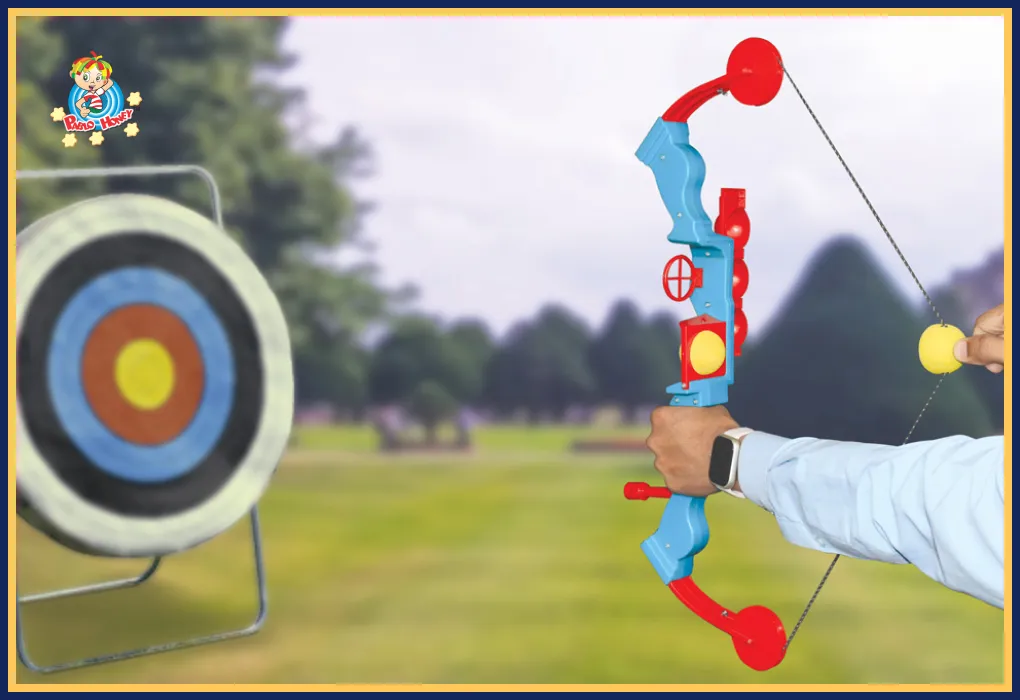 This archery play set is made for kids who enjoy active and outdoor play. It includes a bow and soft balls that are easy to use and safe for kids to enjoy target practice.Kids can aim, shoot, and improve focus while having fun with friends or family. Playing with this set helps develop hand and eye coordination, concentration, and confidence.