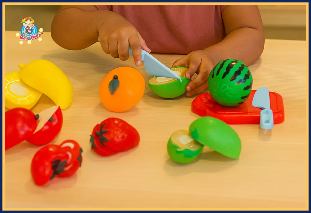 The Cutting Fruit Set is a colorful and engaging pretend play toy designed to make early learning fun and interactive. This 10-piece fruit set allows children to “cut” and rejoin different fruits using the safe plastic knife and chopping board. Its bright colors and realistic fruit shapes attract children instantly and encourage hands-on play. The set helps improve fine motor skills, hand eye coordination, and fruit recognition while supporting imaginative role play. Made from safe and durable material, it is perfect for everyday learning and playful exploration.