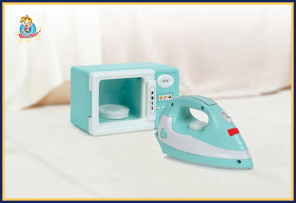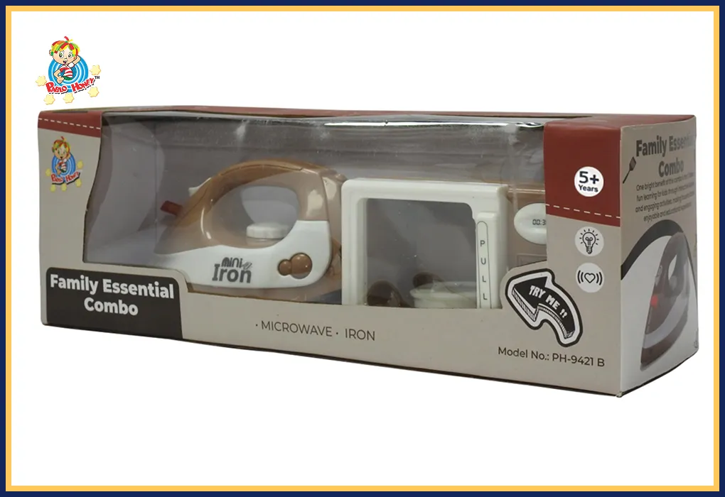 This Family Essential Combo is full of fun for little hands and endless playtime. It includes a mini oven, a sewing machine, and other exciting home appliances that let kids explore everyday activities in a playful way. Each appliance has easy-to-use buttons, moving parts, and lights that make playtime feel real. Kids will love pretending to cook, sew, and mix, keeping them engaged and curious. This combo is perfect for sparking imagination and creative role play, making every play session exciting and enjoyable.