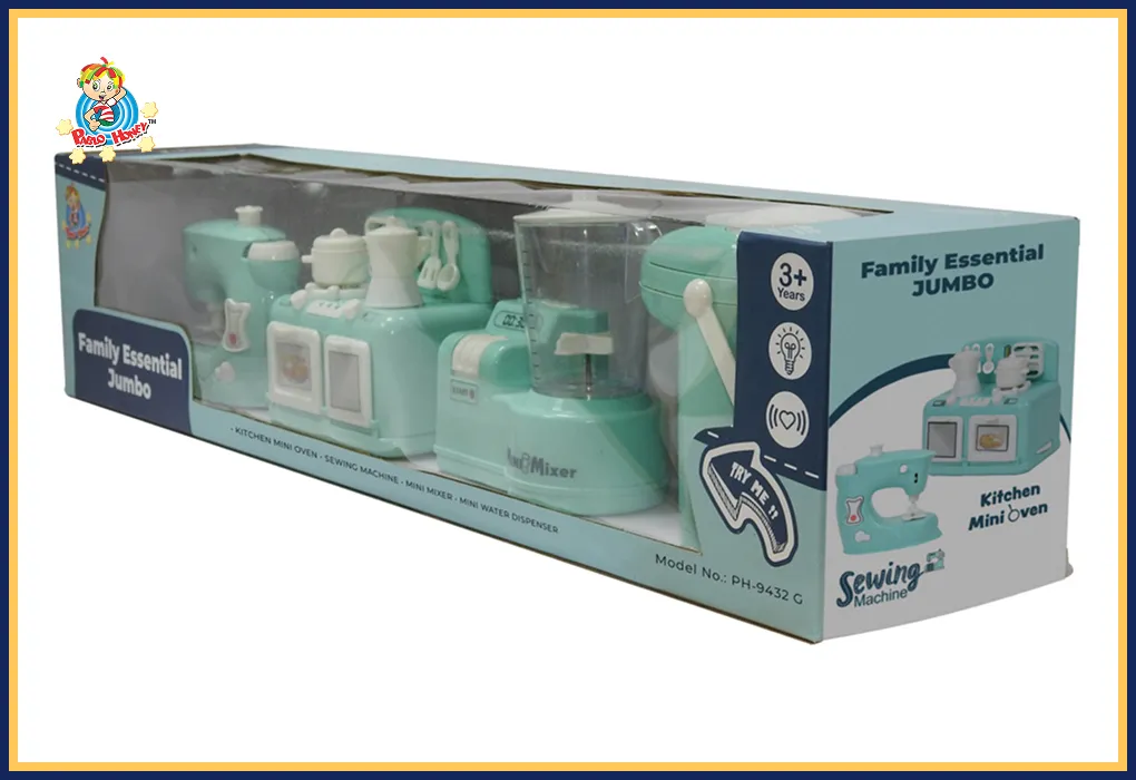 This family essential jumbo play set is perfect for kids who enjoy home and daily life games. It includes multiple household items that let kids explore everyday activities in a fun and simple way.Kids can enjoy cooking, ironing, and other home tasks during playtime, which helps build creativity and life skills. This type of play also supports imagination and social learning.